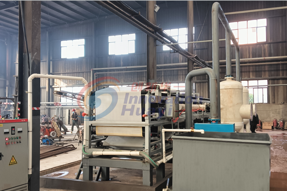 面對環保壓力與成本控制的雙重挑戰,該廠經多方考察,最終引進了我廠的8平方米固定室帶式真空過濾機,并由專業工程師團隊完成全流程安裝調試。這一占地緊湊卻性能卓越的設備,為高難度工業污泥脫水提供了創新解決方案。